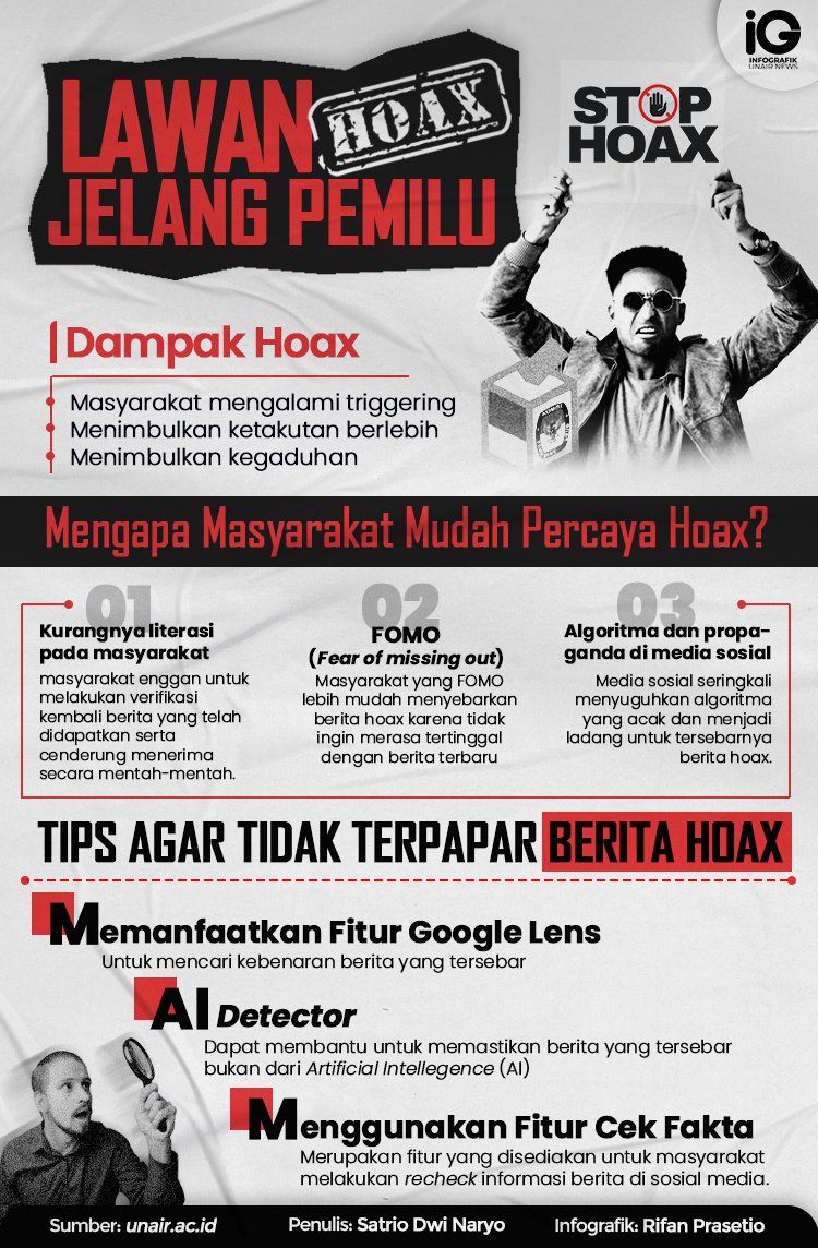 - Polarisasi Sosial: Berita hoaks seringkali digunakan untuk memecah belah masyarakat dengan menyebarkan ujaran kebencian dan provokasi.